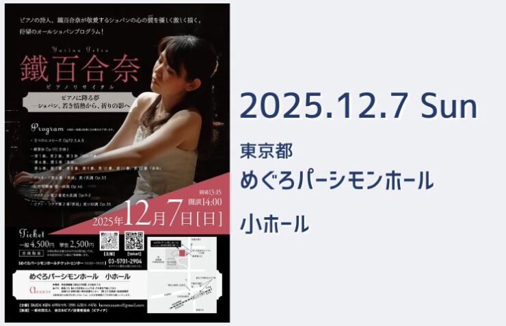 めぐろパーシモンホール(小)で、オールショパンプログラム...