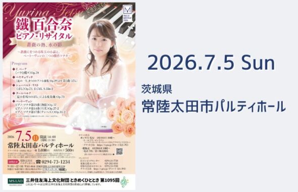 私はベートーヴェンのピアノ・ソナタ第23番《熱情》より第1楽章、ショパンのポロネーズ第6番《英雄》など演奏いたします。
